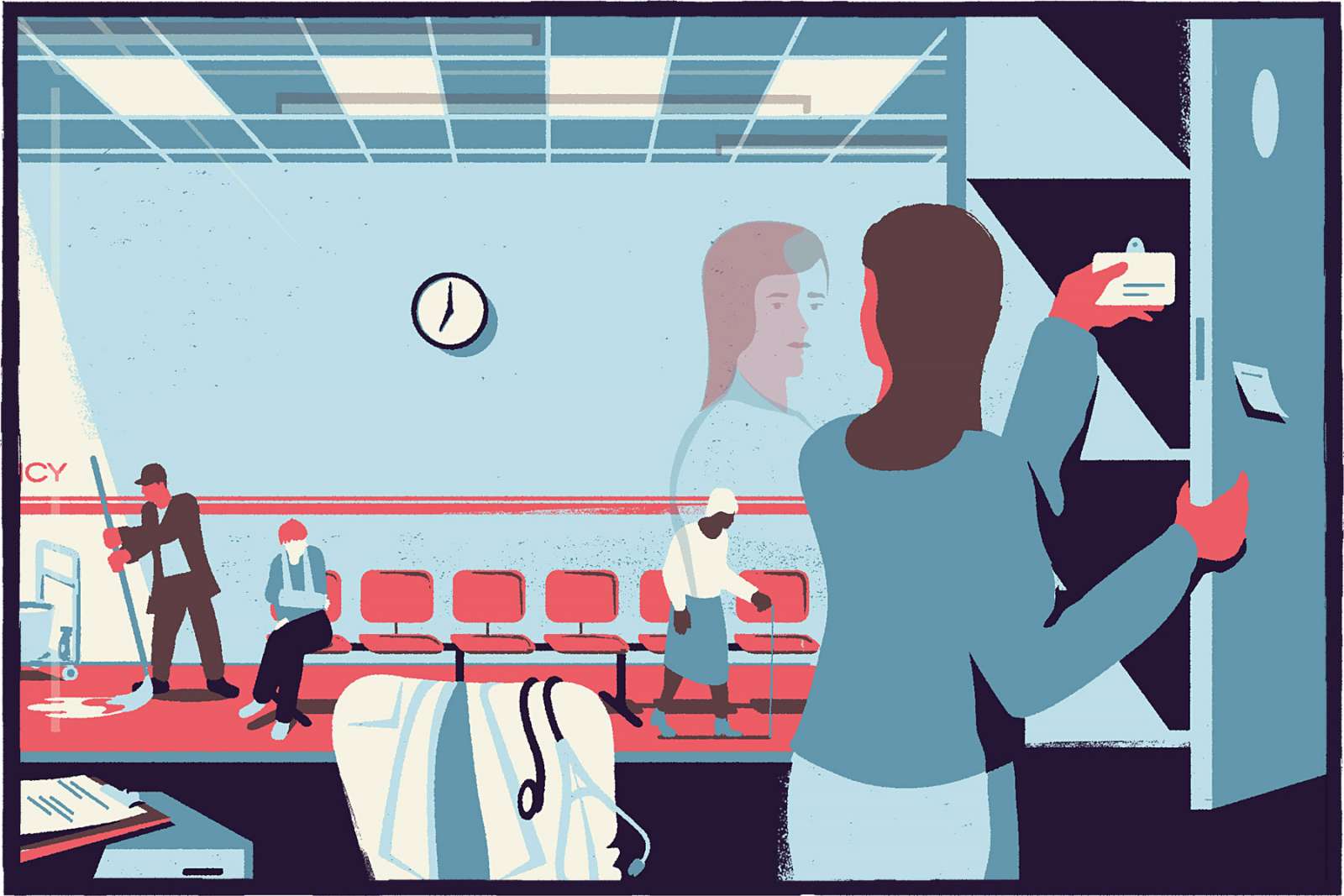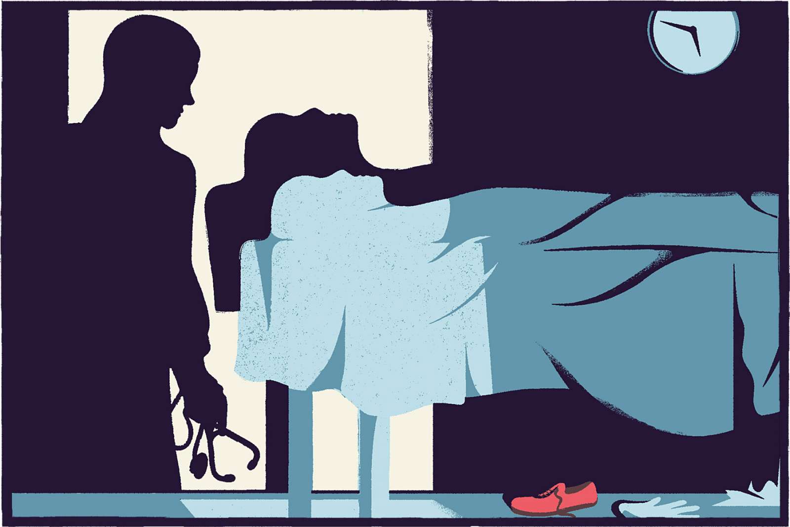 A Guardian and a Thief Megha Majumdar, art, Berlin, book, conceptual, Conceptual Illustration, Daniel Dolz, Doris Freigofas, Editorial Illustration, family, fear, global warming, Golden Cosmos, Illustration, magazine, man, Mental Health, money, New York Times, political, screenprint, silkscreen, The New York Times, war, woman,