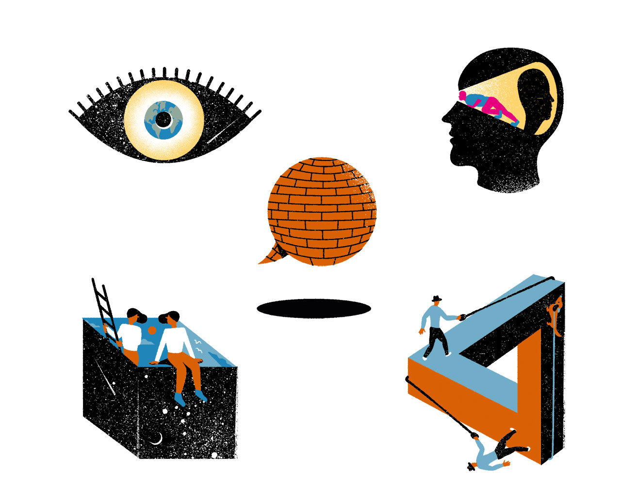 Abstract, Conceptual Illustration, Daniel Dolz, Doris Freigofas, Fluter, Golden Cosmos, magazine, Science, Spots, Truth, Vignetten,