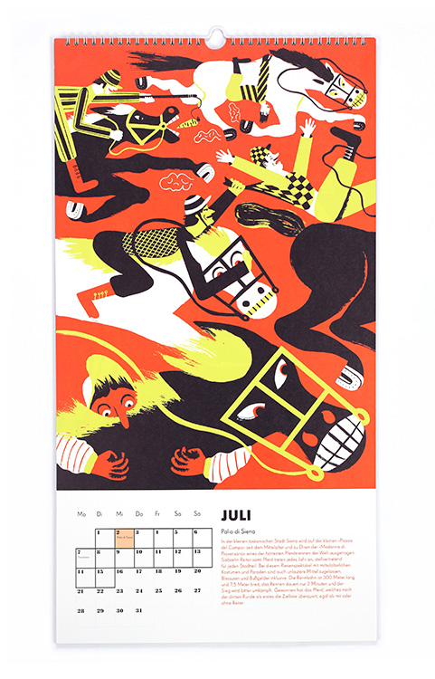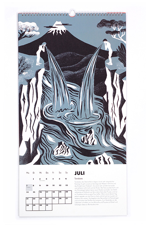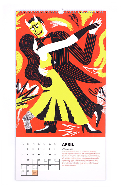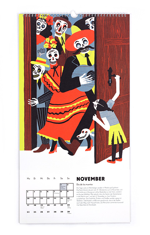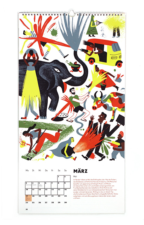 The wall calendar illustrates 24 international holidays and accompanies you through a year of quiet, peaceful, spiritual, festive, hilarious and crazy holidays around the world.